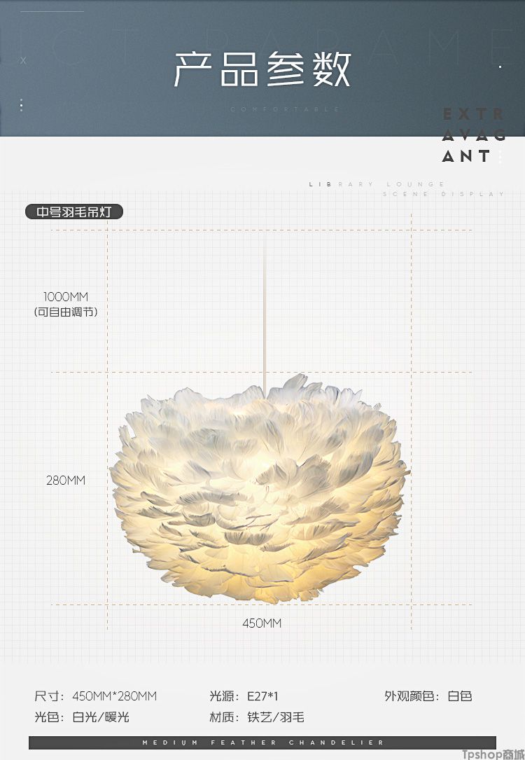 商品名称: 羽毛灯卧室北欧灯具现代简约创意客厅儿童房温馨浪漫公主羽毛吊灯