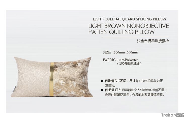 商品名称: 澜品家居简约现代北欧/样板房靠包抱枕靠垫/浅金色提花拼接腰枕