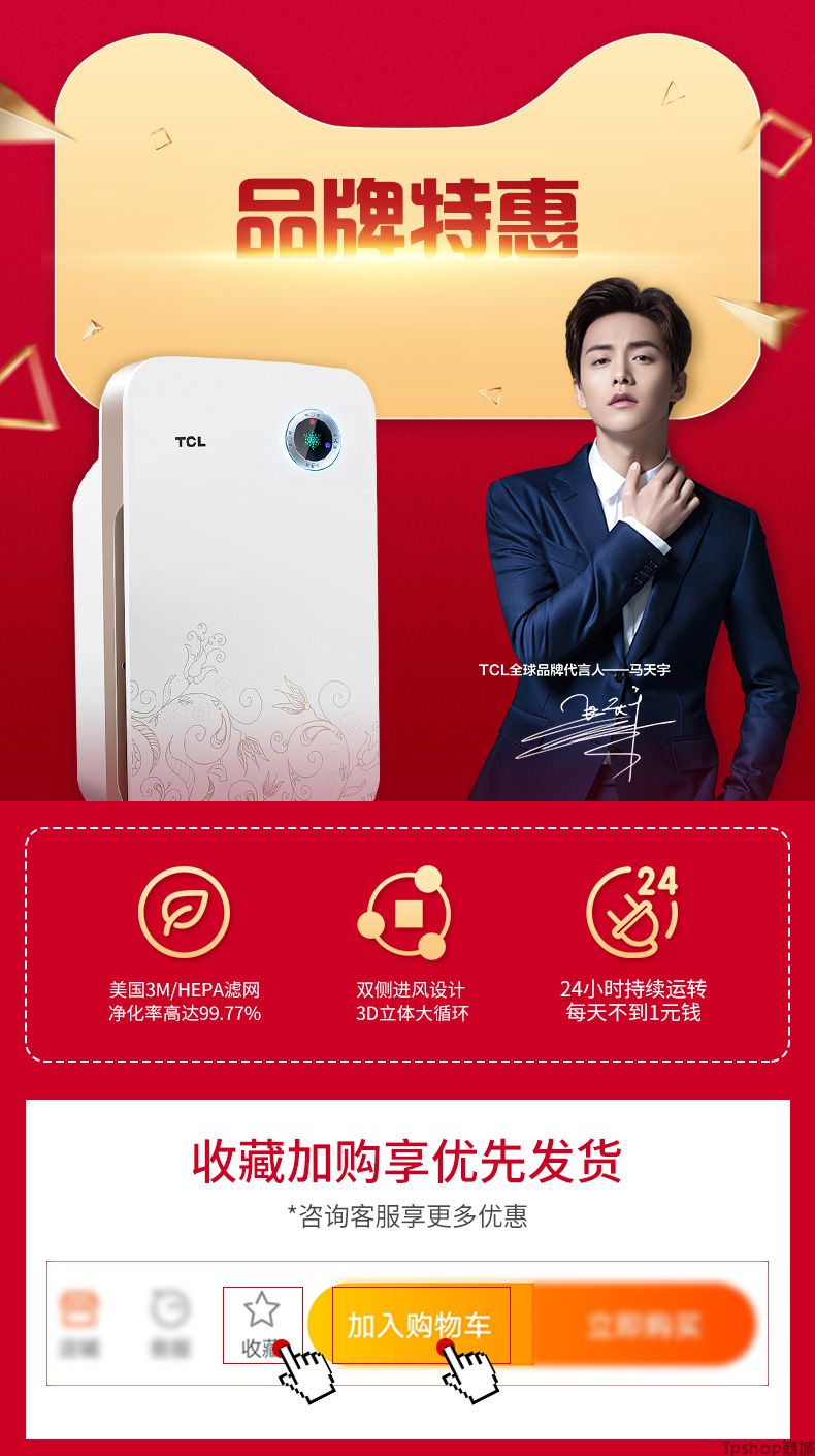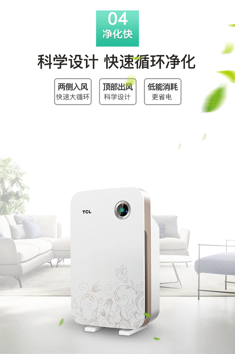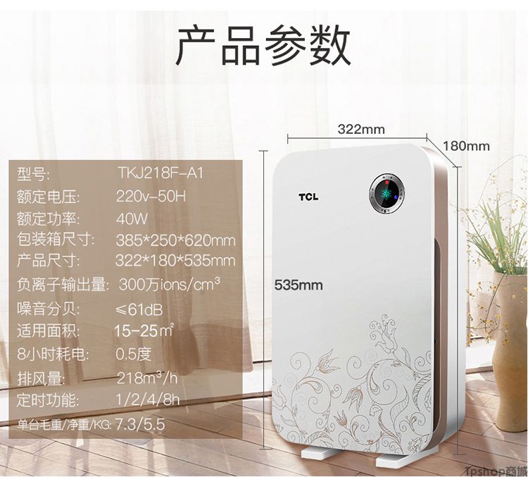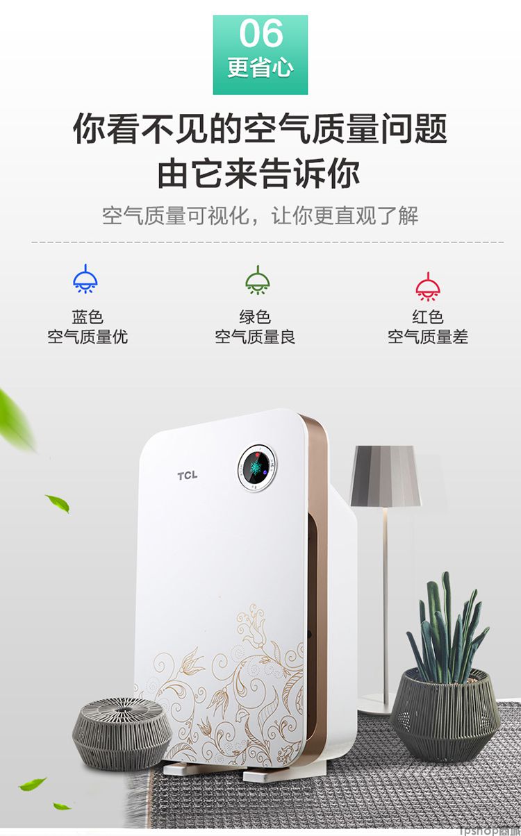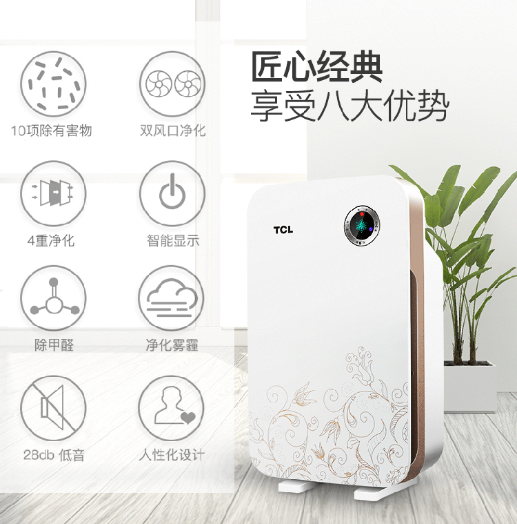 商品名称: TCL空气净化器家用除甲醛雾霾PM2.5卧室除二手烟粉尘除异味负离子